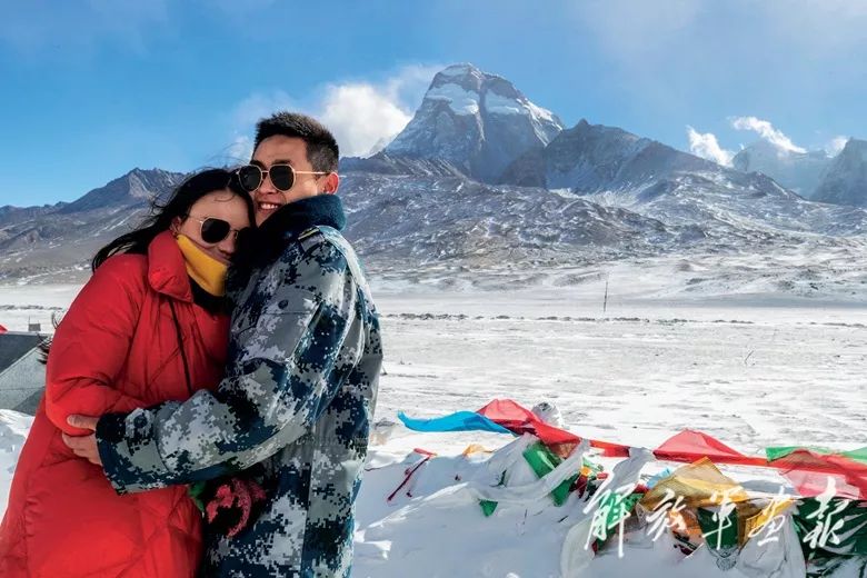 冰冷的高原雪山與張錦源和王梅臉上甜美的笑容形成對(duì)比
