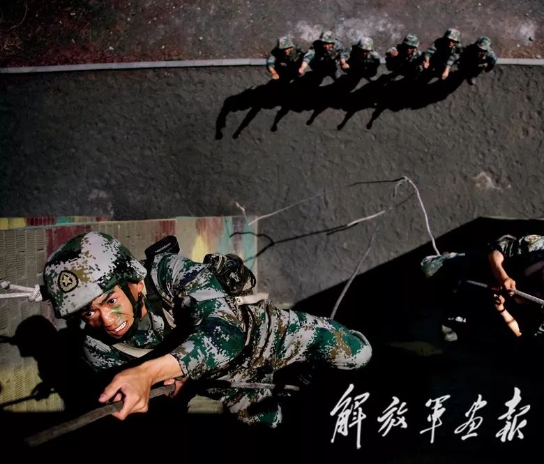 下面這張照片的主體是奮力向上攀巖的士兵,背景則是戰(zhàn)友們的鼓勵(lì),攝影師以一種俯拍的角度記錄了戰(zhàn)友之間的團(tuán)結(jié)精神。