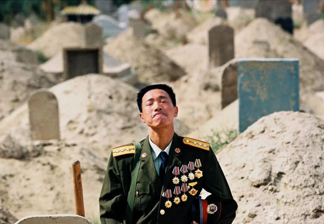 攝影師袁學(xué)軍的拍攝角度與人物情緒非常好的進(jìn)行結(jié)合。在英雄模范人物掃墓的過(guò)程中,在一種生活化的場(chǎng)景下,抓住人物內(nèi)心情感,表現(xiàn)一個(gè)軍人的真實(shí)人性,使得作品十分感人。